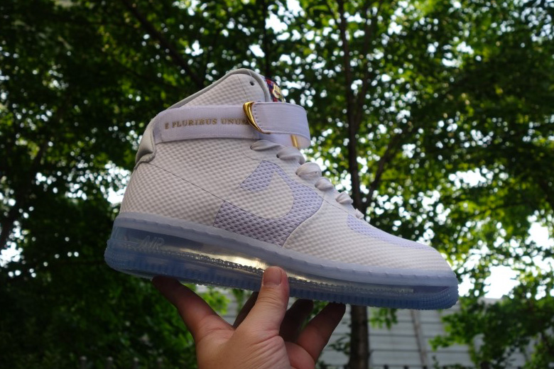 On note également plusieurs détails dorés sur cette sneaker comme l’inscription « E Pluribus Unum », l’une des devises des USA.