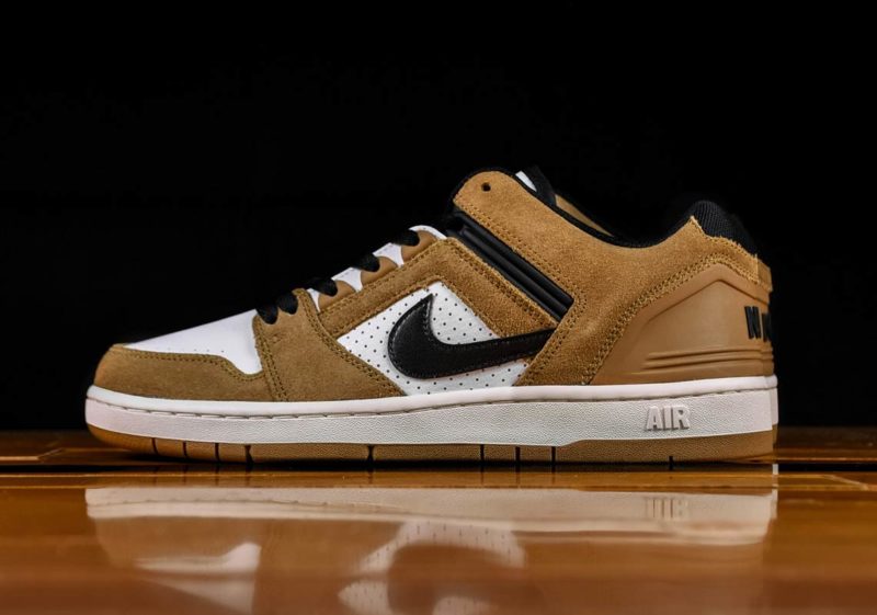 La Air Force 2 fit ses débuts en 1986 avant d’être rééditée en 2002 avec le modèle emblématique porté par Charles Barkley reprenant l’identité graphique des Philadelphia 76ers. C’est l’année suivante, en 2003, que le modèle Low fut introduit. Cette variante Escape 2018 arbore cette construction basse et reprend tous les codes ayant fait son succès lors de la sortie originelle. L’empeigne alterne entre mesh et cuir. Les pièces de cuir sont blanches et perforées au niveau du Swoosh tandis que le mesh, dominant sur ce modèle, est marron clair. Une teinte qui semble légèrement plus claire que pour la paire sortie il y a 13 ans. Le Swoosh ainsi que d’autres empiècements ont été peints en noir. On dénote sur ces premiers clichés la présence d’un logo Nike SB rouge sur la languette complété par le branding Nike au talon. En complément, une semelle intermédiaire toute blanche apporte un contraste agréable à l’œil et se surpose à une semelle extérieure de même couleur que l’upper pour une homogénéité chromatique.