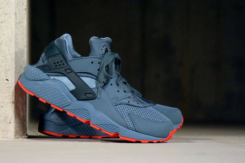 L’un des modèles phares de la saison dernière, la Nike Air Huarache, sort dans une version alliant mesh et feutrine. Les amateurs remarqueront d’ailleurs que le shape (la forme de la sneaker) est meilleur avec ce type de matériaux. La déclinaison est ici extrêmement sobre avec un gris bleu sur l’ensemble de l’empeigne. Une touche de rouge (bright crimson) vient relever le tout au niveau de la semelle extérieure.