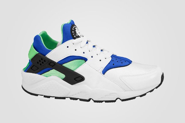 La Nike Air Huarache revient cette saison dans l’un de ses coloris les plus emblématiques : White/Royal Blue/Scream Green. Sur cette paire, le blanc est prédominant, que ça soit par le mesh ou le cuir. L’utilisation des fameux Royal Blue et Scream Green est faite sur les zones recouvertes de néoprène. Ce modèle, sorti en 1991 puis réédité en 1999, sera disponible à la fin du mois d’août sur notre e-shop SNKRS.