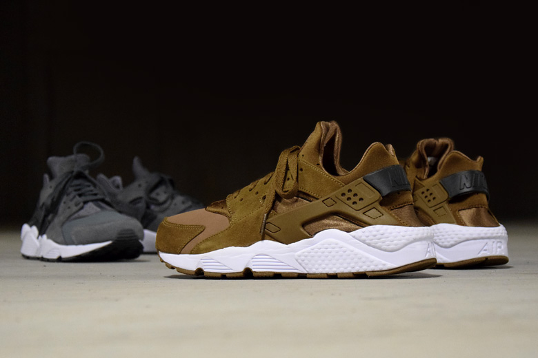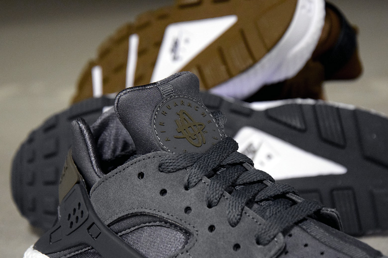 Le coloris marron (Umber Brown) dispose du logo Air Huarache et du strap à l’arrière du pied en noir alors que sur la version grise (Dark Grey) ces éléments sont plutôt dans des teintes proches d’un khaki ou d’un gris foncé.