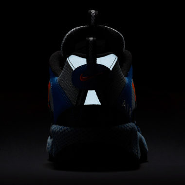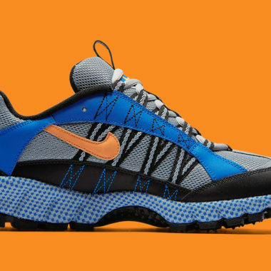 La silhouette de cette Nike outdoor dédiée à la pratique du trail est intacte pour cette sortie estivale. La paire est pourtant aujourd’hui davantage axée sur le côté streetwear plutôt que purement sportif. Elle bénéficie toujours d’une coupe basse dont l’empeigne est conçue à partir de mesh et de cuir. Les empiècements de mesh sont essentiellement gris, ceux en cuir sont plutôt bleus. Une touche orangée appliquée pour le Swoosh latéral ainsi qu’au talon vient apporter un contraste discret. Un mini-Swoosh bleu très subtile fait son apparition sur la toebox. La semelle originale de cette Humara intègre du tissu bleu autour de la semelle intermédiaire, une grande première lors de sa sortie originelle. Bien que plutôt massive, elle s’intègre aujourd’hui parfaitement au catalogue Nike, la marque développant continuellement des modèles à semelle chunky très en vogue actuellement. À l’avant, un caoutchouc recouvre la pointe de la chaussure pour offrir une meilleure résistance aux chocs. La semelle extérieure est également crantée et renforcée. Côté technologie, la paire est dotée à l’avant d’une unité Nike Zoom Air tandis qu’une unité Air classique au talon offre légèreté et confort. Enfin, plusieurs éléments réfléchissants ont été appliqués au talon.