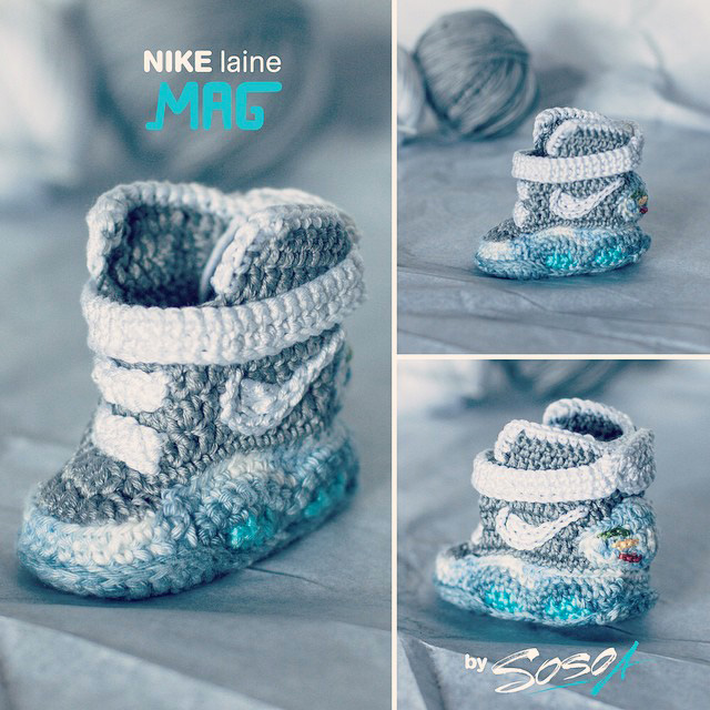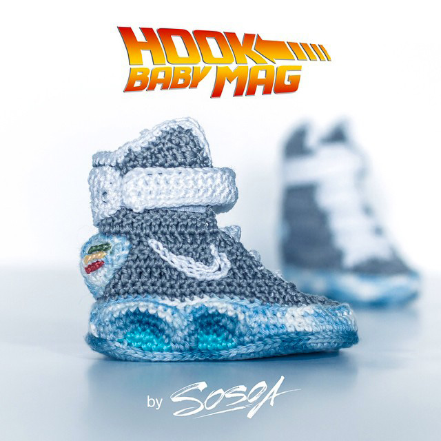 Cette Nike Air Mag en crochet pour bébé est destinée aux 3/6 mois et Solène Sosoa semble accepter les commandes via ses diverses pages de réseaux sociaux.
