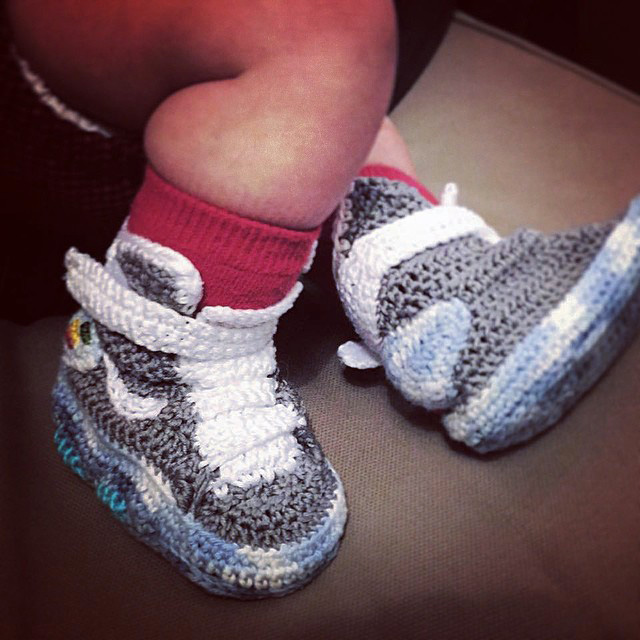 Alors que la véritable Nike Air Mag avec laçage automatique serait prévue pour le courant d’année prochaine, l’artiste Française Solène Sosoa a eu l’excellente idée de réaliser des chaussons pour bébés en tricot.