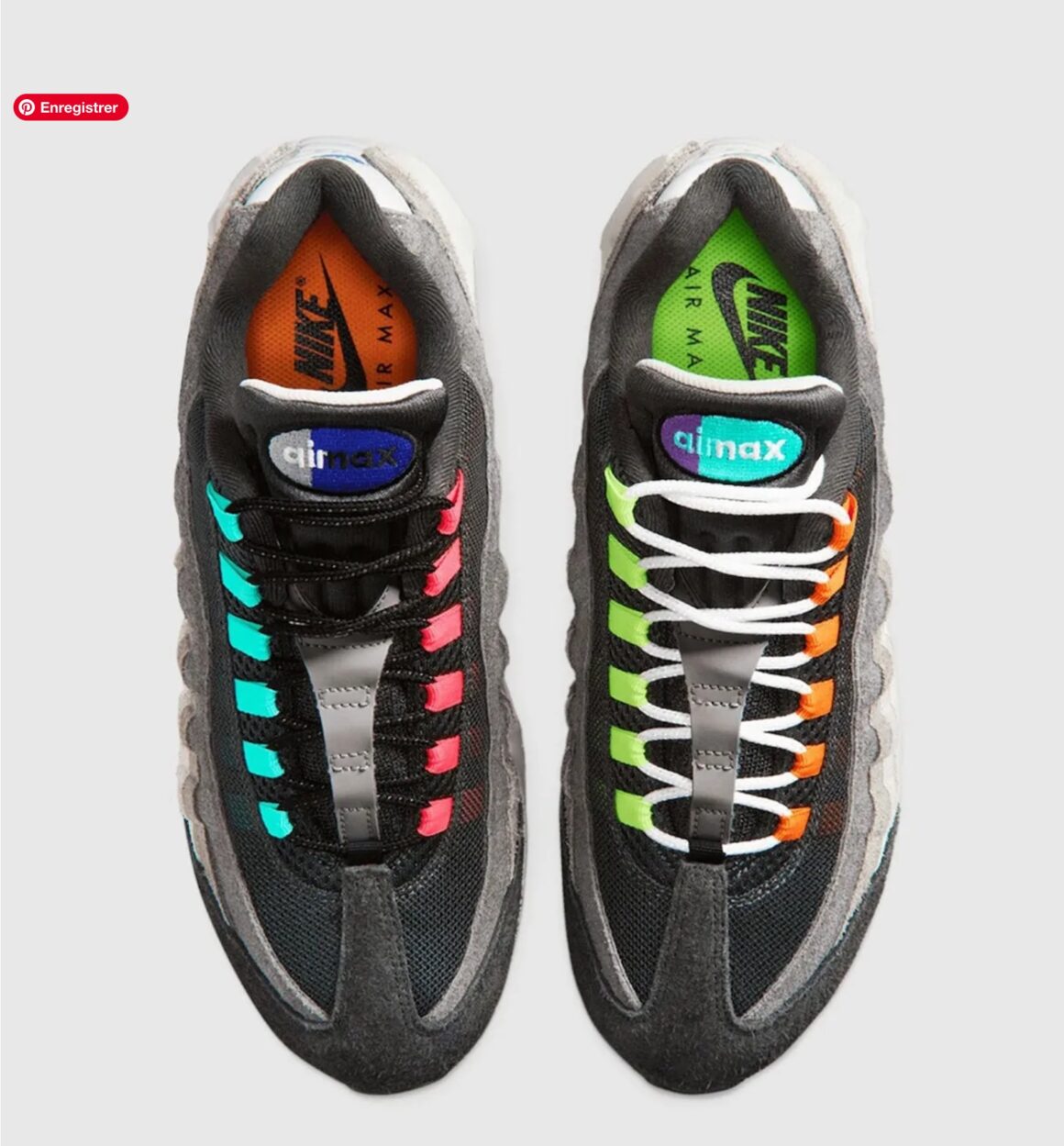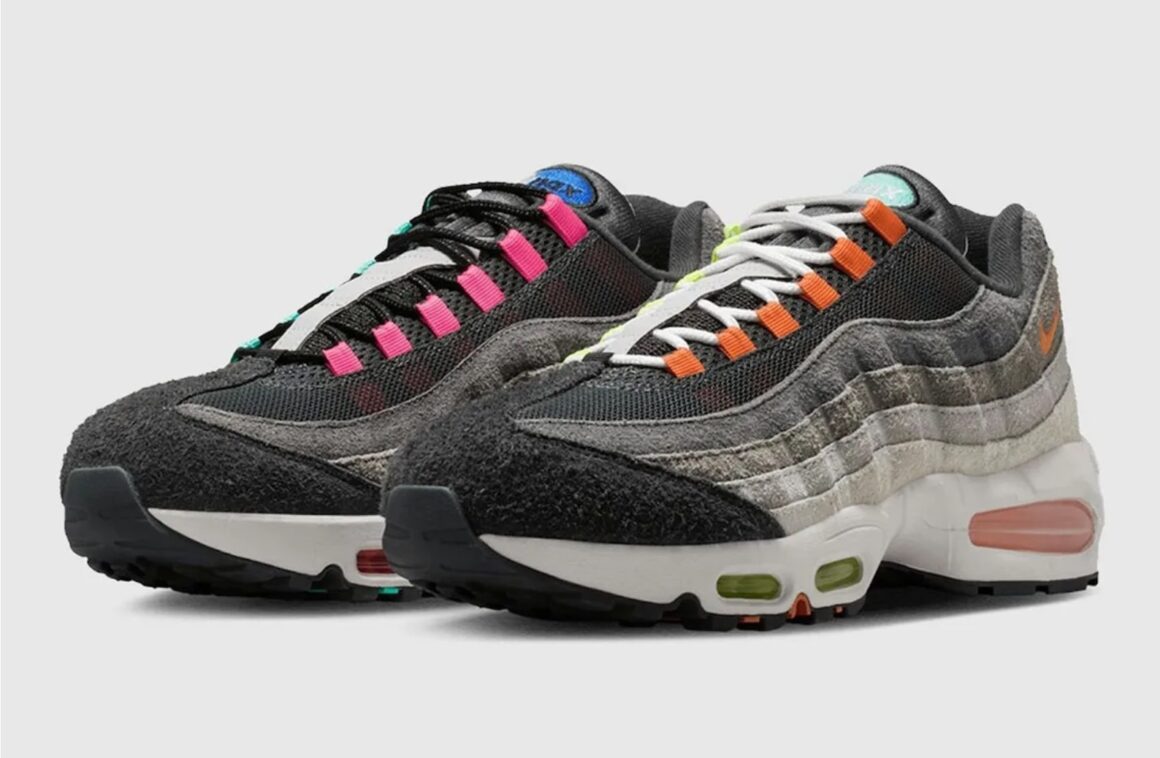 Le principe du coloris Greedy repose sur une idée simple mais très efficace : assembler plusieurs coloris iconiques sur une seule paire. Sur la Nike Air Max 95 Big Bubble Greedy 2026, cela se traduit par un mélange des teintes les plus célèbres de la silhouette, notamment les versions Neon, Solar Red, Grape ou encore Safety Orange. Chaque côté de la chaussure présente des panneaux différents, créant un effet asymétrique très marqué. Les dégradés gris typiques de la Air Max 95 sont toujours présents, mais ils sont accompagnés de touches de couleurs variées sur les œillets, les logos et les unités Air. Ce design volontairement chaotique fait partie de l’identité du modèle. Là où la plupart des Air Max 95 jouent sur l’équilibre et la symétrie, la Greedy assume complètement son côté patchwork, comme une rétrospective visuelle de toute l’histoire de la sneaker. Le résultat est une paire immédiatement reconnaissable, souvent considérée comme l’une des versions les plus originales jamais sorties sur cette silhouette.