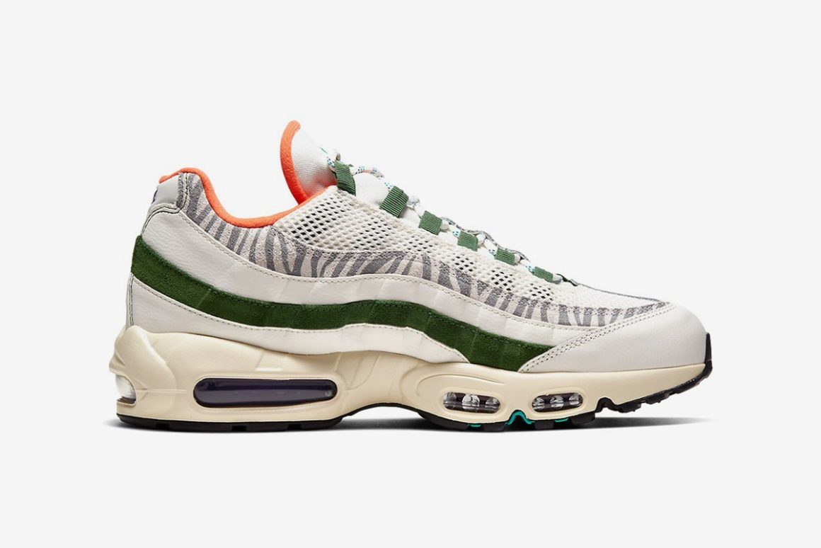 2020 est une année essentielle pour la silhouette de Sergio Lozano puisqu’elle célèbre ses 25 ans. La marque au Swoosh fête l’événement comme il se doit et l’année s’annonce riche en sorties. Les rumeurs d’une réédition du coloris OG « Neon » alimentent l’engouement populaire pour cette sneaker mythique du catalogue Nike, tandis que d’autres éditions sont proposées telle la version Korea. À l’instar de la dernière Air Force 1 en date, cette nouvelle silhouette adopte à son tour un imprimé animalier. La Nike Air Max 95 ERA Zebra, aussi surnommée « Green Safari », est présentée aujourd’hui et réinterprète le coloris « Safari » dans un style vintage.