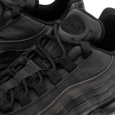 Cette Air Max 95 Premium SE est ainsi réalisée dans une empeigne principale à dominante noire, tout comme pour la semelle. Les touches dorées sont très subtiles et sont présentes sur le Swoosh, dans les bulles d’air et sur l’inscription Nike Air au talon. Un cuir synthétique a été choisi et est associé à des empiècements en 3M assurant leur visibilité dans le noir, au contact de la lumière. Globalement, cette paire est très sobre et apparaît comme idéale pour l’hiver.