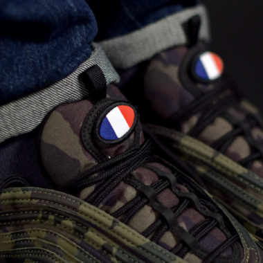 Cela fait un petit moment que l’on peut voir un pack dénommé « country camo » sur la Nike Air Max 97. Plusieurs pays sont concernés : Japon, USA, Allemagne, Royaume-Uni, Italie et la France. Nous avons donc la chance d’avoir « notre » Air Max 97 avec un camouflage unique. On parle de chance car l’originalité de cette sortie réside dans sa distribution : le modèle dédié à un pays est vendu uniquement dans le pays concerné. La marque américaine privilégie donc certains territoires pour apporter une touche d’exclusivité à ce programme. Pour faire simple, vous ne trouverez la Nike Air Max 97 Country Camo France qu’en France.