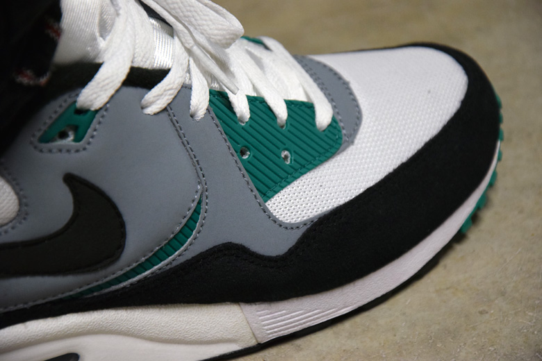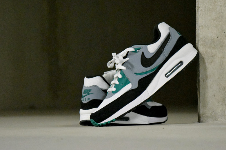 Elle aurait pu être un coloris de l’époque mais la petite touche de vert l’a trahie. Le combo est tout de même très réussi avec ce mix de daim noir, de mesh blanc et cette touche de Mystic Green proche des empiècements gris. La grande soeur de l’Air Max 1 est disponible dans ce coloris de la saison automne 2014 sur SNKRS.