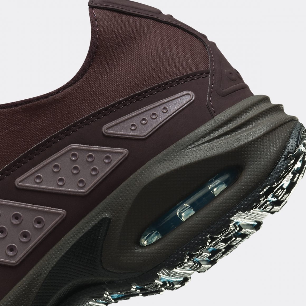 Ce qui rend cette sortie encore plus spéciale, c’est son coloris inédit. La combinaison du Burgundy Crush et du Baltic Blue donne à la Nike Air Max SNDR Burgundy Crush Baltic Blue un look sophistiqué et audacieux, parfait pour les mois froids à venir. Le Burgundy Crush, un bordeaux profond et intense, recouvre une grande partie de la tige en Néoprène. Le Baltic Blue, quant à lui, est utilisé de manière subtile sur certains détails, notamment au niveau du mini Swoosh latéral et de la toebox en dégradé. Le tout crée un contraste rafraîchissant et élégant. Le garde-boue est traversé de patchs en TPU marron, réfléchissants à la lumière. La paire repose sur une semelle intermédiaire kaki, traversée d’unités Air bleues. Le choix de ces teintes fait écho à l’atmosphère hivernale, tout en restant dynamique. Ce coloris est conçu pour les passionnés de sneakers qui souhaitent se démarquer pendant la saison froide tout en restant dans des tons riches et adaptés aux vêtements de saison. Cette palette, combinée à la silhouette imposante et rétro de la SNDR, offre un rendu unique qui mêle confort et esthétique avec brio.