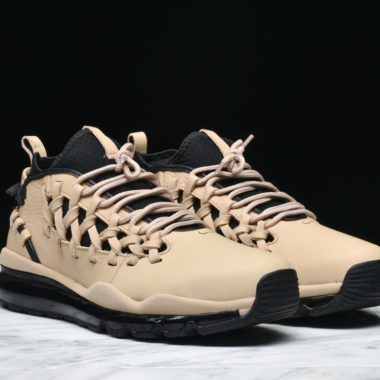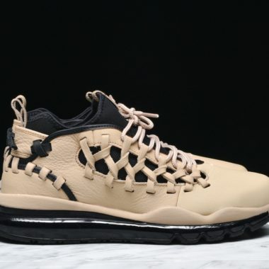 Pour sa collection Spring 2017, Nike édite un tout nouveau modèle au rendu très novateur, la Nike Air Max TR17. Pour le upper, on a droit à une empeigne mêlant un chausson en néoprène noir à du cuir lisse beige. Ce dernier sera d’ailleurs agrémenté de parties en « woven » (tressé) comme sur le côté du pied, ou au niveau du talon. Cet ensemble est disposé sur une semelle Air Max à 360° complètement noire pour un rendu sobre et élégant.
