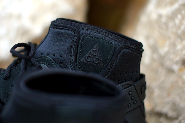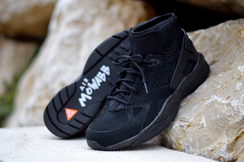 Pour la collection automne/hiver 2015, la Nike Air Mowabb, qui arbore désormais l’abréviation OG pour la distinguer des autres hybrides, est déclinée dans une version parfaitement de saison. La paire est intégralement noire avec seulement quelques touches de gris sur la semelle extérieure. La paire est confectionnée dans un très joli nubuck bien épais. C’est surement pour cette raison que le prix est un peu plus élévé, la qualité des matériaux est supérieure à ce qui se fait d’habitude. Les finitions sont également réussis avec notamment le logo triangle ACG brodé en ton sur ton au niveau de la cheville.