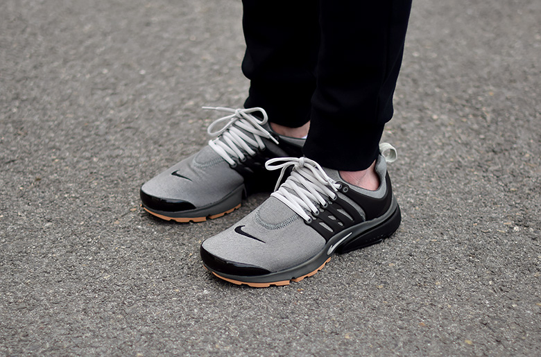 Pour la saison Summer 2016, c’est une Presto avec un traitement inédit qui s’apprête à sortir. La paire est confectionnée dans une toile gris foncé dont l’aspect rappelle celui d’une toile denim (un jean). On retrouve des touches de noir à différents endroits : semelle extérieure, empiècement au niveau des orteils, la cage en plastique… Une nuance de gris plus clair a également été apposée sur les logos et les lacets. Enfin la partie extérieure de la semelle est finie en gum. On retrouve sur cette paire des finitions premium et son nom est d’ailleurs composé des lettres PRM.