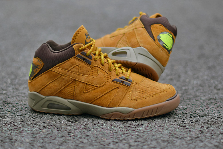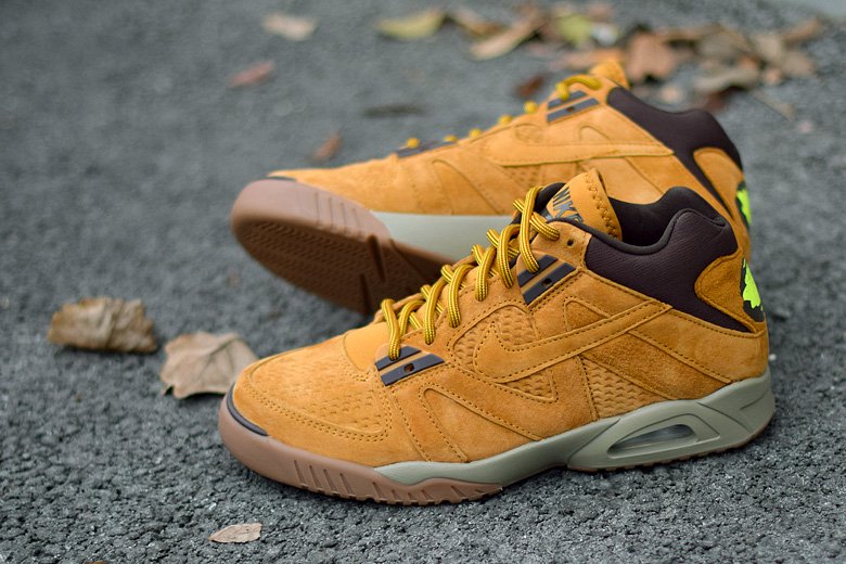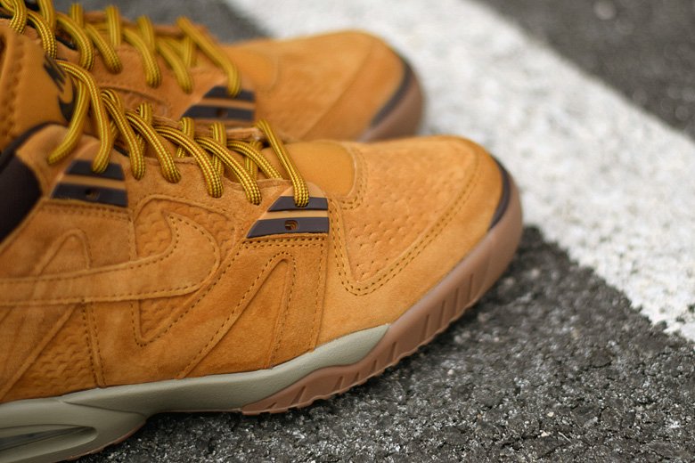 C’est une version inédite qui sera disponible en cette fin d’année que nous vous présentons aujourd’hui. Cette Nike Air Tech Challenge 3 est en daim de couleur « wheat », cette fameuse nuance qui revient le plus souvent pour les saisons les plus froides. Une sorte d’inspiration de la Timberland Boots. Ici la paire est donc en daim avec sa semelle intermédiaire marron clair et gum. Des lacets façon workboots accompagnent les sneakers. Cette paire fait partie d’un pack « Wheat » prévu pour la saison Holiday 2015, la dernière de l’année. On aura également droit à des Air Force 1, Air Max 1 avec le même type de traitement.