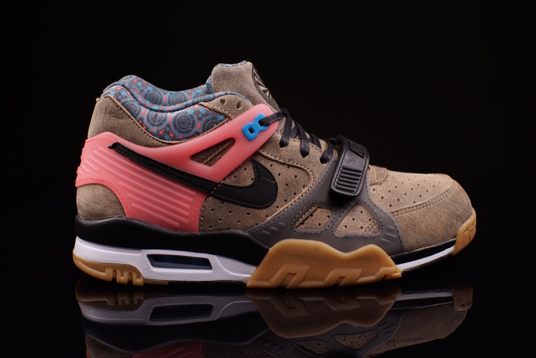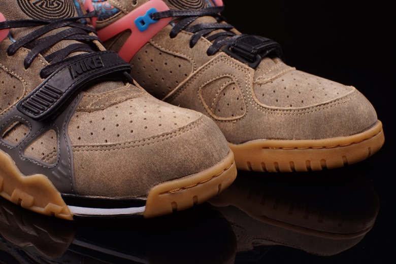 Nike ne rate pas l’occasion de sortir une paire de sneakers dédiée à l’événement. Cette fois-ci encore, c’est un modèle de la série Air Trainer qui a été choisie avec la Nike Air Trainer 3. (si vous n’avez pas le souvenir de la collection sortie pour le Superbowl 2014, elle est ici) La paire est en cuir marron légèrement vieilli, semelle gomme et quelques touches de couleur au niveau de la cheville et de l’empiècement au plastique. On ne sait pas en revanche ce que signifie l’élément graphique au niveau de la languette.