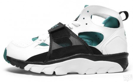 Nike ajoute une nouvelle rétro à sa collection 2011. La Nike Air Trainer Huarache revient dans un coloris très familier, avec sa combinaison de cuir blanc et son chausson néoprène « fresh water ». Découvrez dans la suite d’autres images de la paire déjà disponible aux U.S.