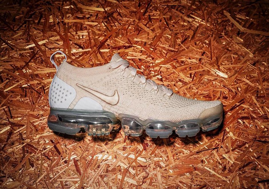 C’est à travers une photo dévoilée sur le compte Instagram de SneakerProphet que nous découvrons le premier visuel de cette deuxième du nom. L’aspect général est sensiblement le même avec une construction faite à partir de Flyknit et d’éléments thermocollés. C’est principalement au niveau du Swoosh que le changement opère. Ce dernier a été réduit et replacé sur la partie arrière de la sneaker. Des renforts arrières ainsi qu’une tirette ont été ajoutés aux talons. Ce premier aperçu du modèle est proposé dans une jolie teinte beige et sa semelle Air Max qui en fait toute son originalité.