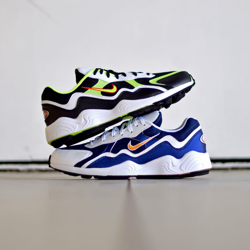 Ce modèle prévu pour la pratique du running a connu un succès qui s’est rapidement fait occulter par la Nike Air Zoom Spiridon qui est arrivée l’année suivante, en 1997. On retrouve beaucoup de similarités entre ces deux sneakers. Leur créateur est en effet le même, Christian Tresser. Celui-ci s’est inspiré de la Nike Air Zoom Alpha pour créer cet autre classique qu’est la Spiridon. Pour ce retour du modèle de 1996, les amateurs de sneakers vintages seront heureux d’apprendre que l’un des coloris originaux sera réédité avec la forme et les matériaux d’époque. En effet, la version qui mixe du blanc avec du bleu et des touches d’orange reviendra pour la première fois en ce mois de février. Ce coloris surnommé « Binary Blue » sera accompagné par une autre paire au look complètement rétro avec cette combinaison de noir, de vert fluo relevés par des touches d’orange vif. Avec sa construction associant du mesh souple à du cuir, cette Nike Air Zoom Alpha tombe à pic pour débuter comme il se doit la saison printanière 2019.