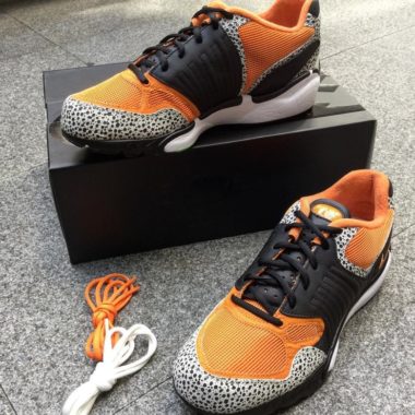 C’est le motif « Safari », emprunté à la Nike Air Safari de 1987, qui sera proposé sur cette silhouette dessinée une fois de plus par le designer Tinker Hatfield. La sneaker dispose d’une alliance de matières avec du cuir et des empiècements en mesh ornés de feutrine. Ce sont donc les coloris noir, orange et sa partie tachetée qui sont disposés sur la paire. On retrouve sur les talons la signature du modèle avec le Swoosh brodé en orange. Cette nouvelle édition sera accompagnée de trois paires de lacets différents.