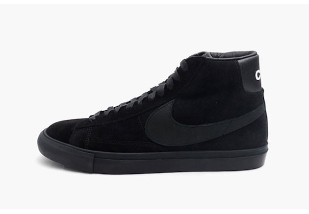 La gamme Black de la marque japonaise COMME des GARÇONS sort à nouveau une paire de Nike. C’est une paire de Nike Blazer High entièrement noire qui vient d’être réalisée. Comme pour la version Low de 2013, CDG a imaginé un upper en suède parsemé de quelques touches de cuir au niveau du Swoosh et du talon. Ce modèle est dès à présent disponible dans les magasins Dover Street Market.