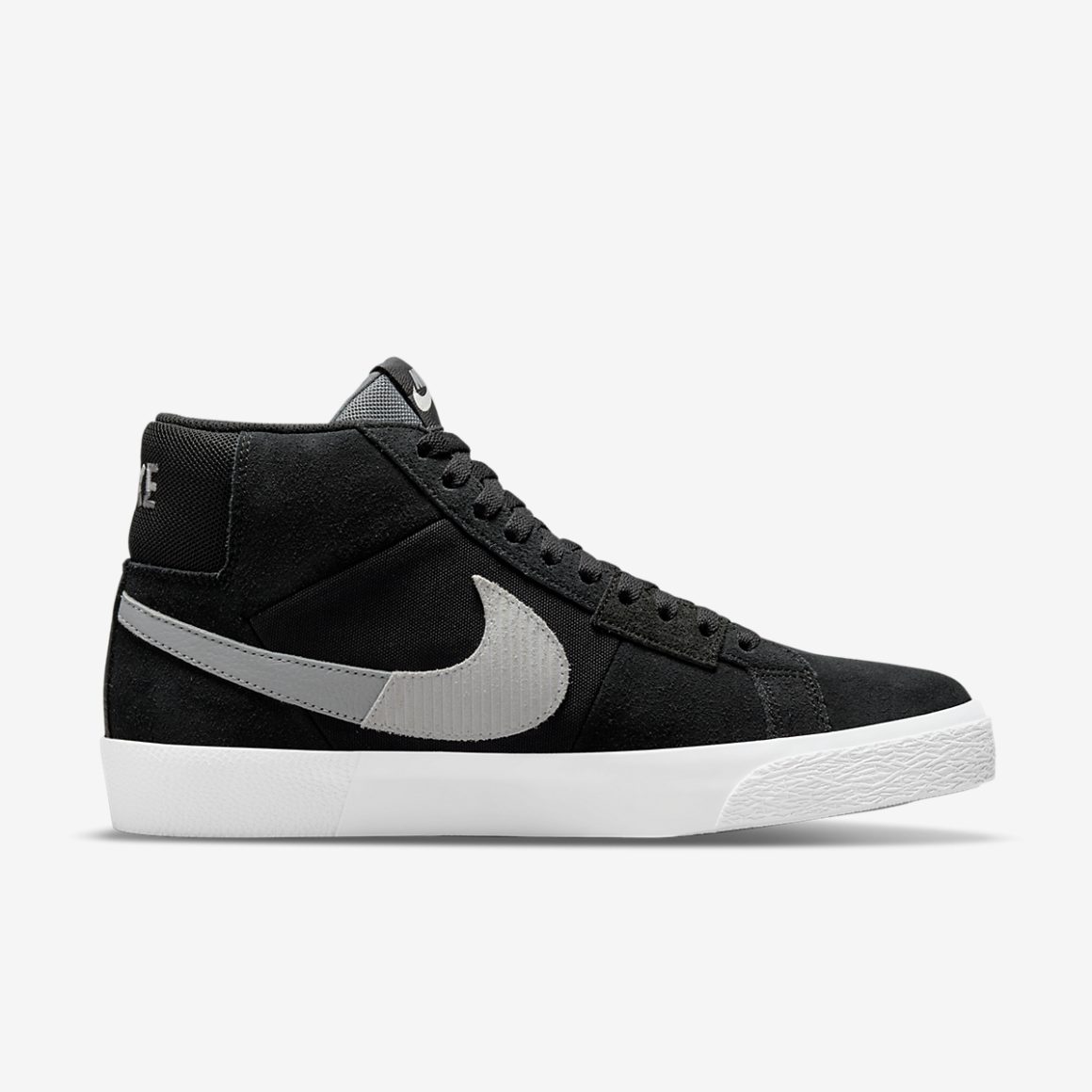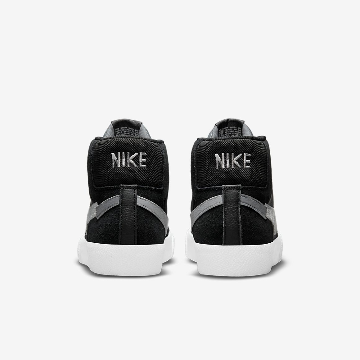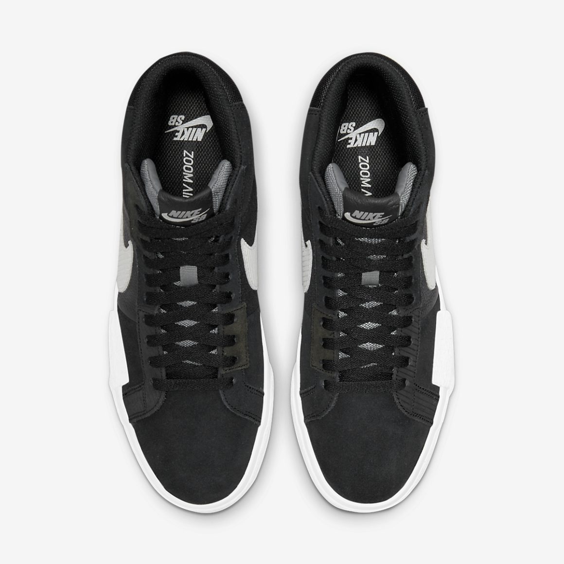 La seconde itération du pack Mosaic joue la carte de la sobriété en offrant le même patchwork, mais en optant exclusivement pour du noir sur la tige. Seuls le Swoosh et la languette dénotent avec un camaïeu de gris. La semelle immaculée finalise le design de cette version sombre de la Blazer.