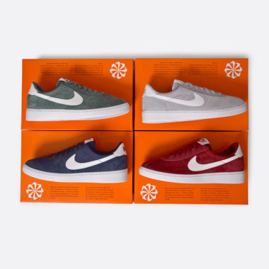 Pour la collection de fin d’année 2016, Nike Sportswear ressort une série très réussie de quatre Nike Bruin. On croirait les modèles d’époque avec cette empeigne en cuir suédé monochrome et ces Swoosh blancs. Quatre couleurs sont disponibles : hasta (un vert), gris, bleu marine et team read (bordeaux). Petite originalité, c’est une boite façon Blue Ribbon Sports qui accompagne les sneakers, comme pour certaines Nike Cortez sorties cette année.
