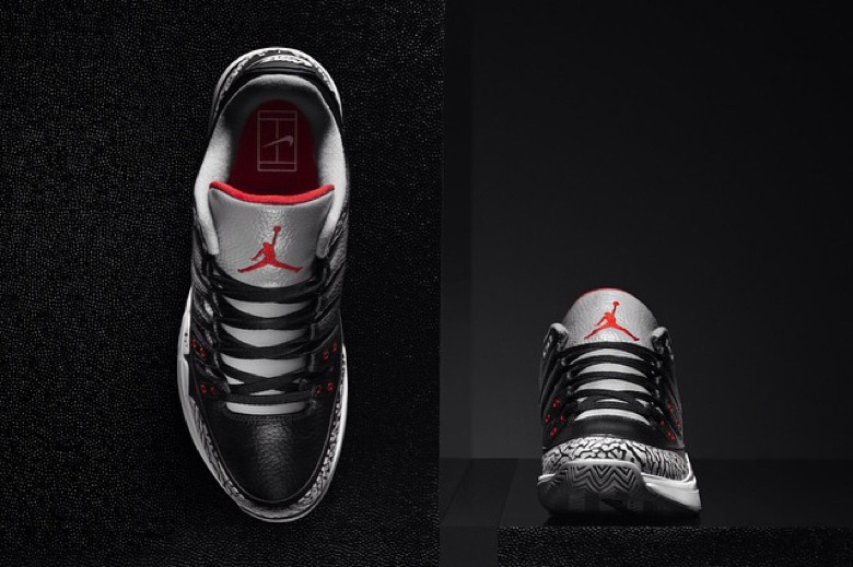 Nike développe son modèle Court Zoom Vapor AJ3 en lui appliquant le légendaire coloris « Black/Cement ».