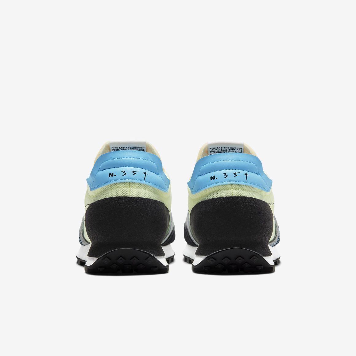 Sortie en 1979, la Nike Daybreak est déclinée dans plusieurs versions depuis sa dernière réédition majeure l’été dernier. La silhouette de running s’offre un re-lifting au sein de ce programme et en adopte les codes. Elle est ainsi présentée sous les traits d’un modèle déconstruit. Les parties suédées sont conservées mais les empiècements en nylon sont remplacés par un mesh semi-transparent. Seuls les contours du Swoosh Nike sont présents sur cette version, sous la forme d’une couture noire. D’autres coutures apparentes sont visibles sur la partie suédée, à l’avant, dans une teinte bleue. La languette en nylon adopte un style vintage avec une partie de la mousse visible sur le haut, tandis qu’un empiècement suédé apparaît près de la cheville. Ce sont sur ces empiècements que l’on retrouve les mentions N.354. La paire conserve la semelle Waffle typique déjà présente sur le modèle lors de sa sortie il y a plus de quarante ans. Le code couleur est pétillant et combine des éléments variés : jaune « Volt », bleu ciel, noir, gris ou encore du blanc pour la midsole.