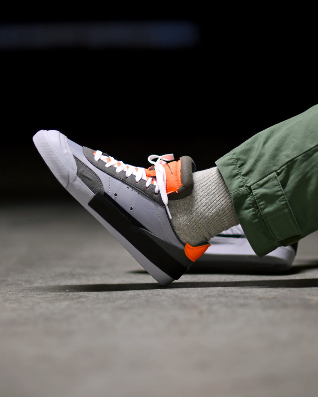 L’équipementier de Beaverton a imaginé une collection faisant la transition entre le passé et l’avenir. Laissant carte blanche à ses designers en leur donnant accès aux archives de la marque, il en est sorti une collection baptisée N. 354. Cette collection, actuellement agrémentée de Air Force 1 et Air Huarache, a permis d’imaginer à nouveau des modèles qui ont près de trente ans d’existence, voire plus. L’idée directrice de la collection est le prototypage et cela se ressent sur la construction des modèles. Pour compléter le duo remis au goût du jour, la firme de l’Oregon a imaginé une Nike Drop Type, que nous vous présentons ici dans le coloris Wolf Grey Total Orange.