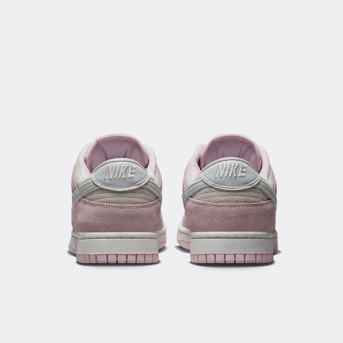 Le Nike Dunk Low Suede Pack Spring 2023 se compose de deux paires, qui seront bientôt disponibles chez nous, et qui seront déclinées en tailles féminines et masculines. La première paire du pack est la Nike Dunk Low Suede Pink Foam. Sa toebox et ses panneaux latéraux sont en cuir suédé beige clair. Un imposant Swoosh latéral est construit en cuir platine, liseré de blanc. Il s’accorde au heeltab, qui lui est brodé d’une inscription Nike blanche. Les gardes-boues avant et arrière sont en cuir suédé rose pastel, assortis à la semelle extérieure. La languette crème est surmontée d’une étiquette blanche au logo Nike ton sur ton. La paire arbore des lacets noir et blanc, aux motifs pieds de poule.