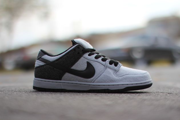 Pour sa collection Hiver 2013, Nike Skateboarding a revu sa classique Nike SB Dunk Low en lui appliquant des matériaux de saison. La paire dispose en effet de laine, sur deux teintes, associée à des empiècements en cuir.