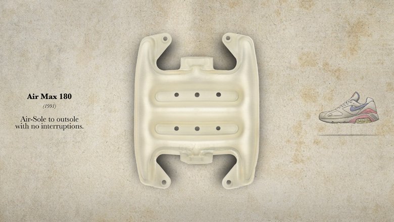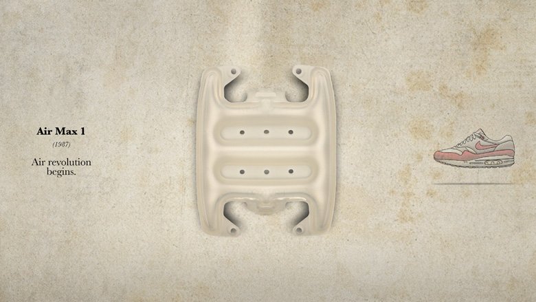 On a droit à de belles images d’archives expliquant comment ces fameuses semelles Air Max ont évolué au cours du temps.