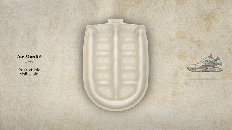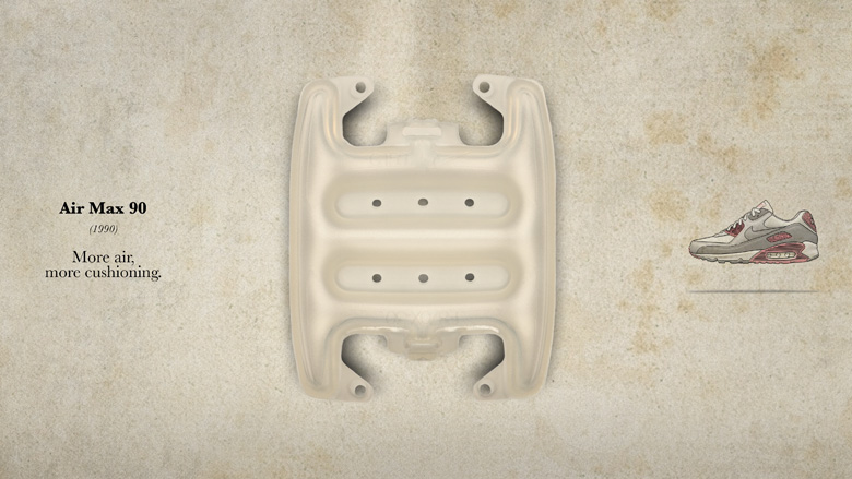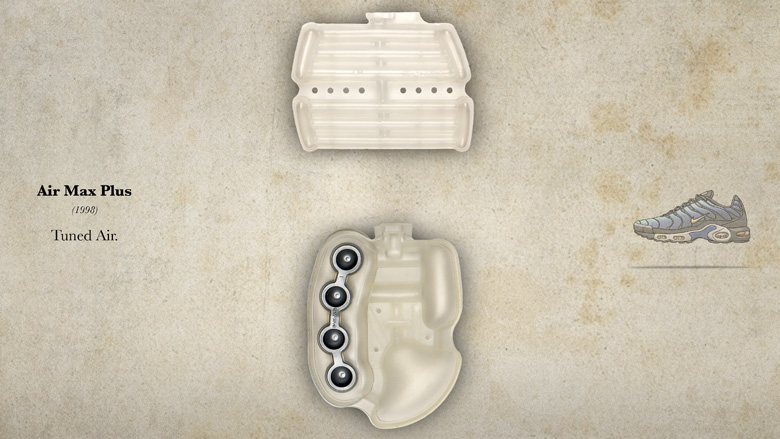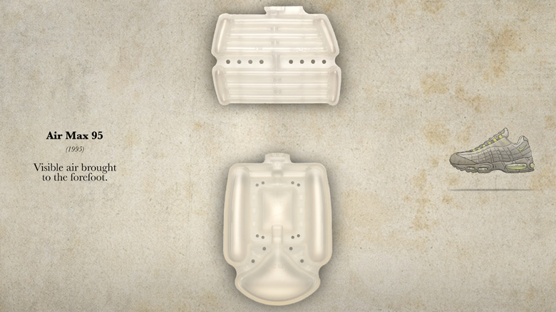 On a droit à de belles images d’archives expliquant comment ces fameuses semelles Air Max ont évolué au cours du temps.
