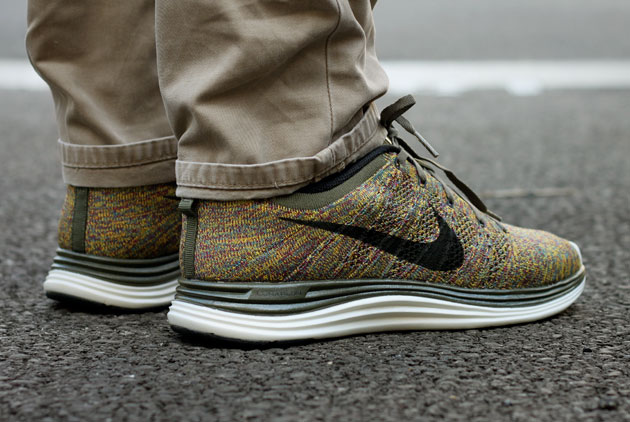 La technologie Nike Flyknit permet d’obtenir des rendus inattendus lorsque plusieurs couleurs sont associées. C’est le cas de cette paire aux tons hivernaux avec ce mélange de khaki, jaune et bordeaux. La midsole rappelle d’ailleurs, de manière très réussie, la couleur khaki appliquée sur le chausson et les lacets.