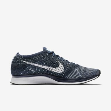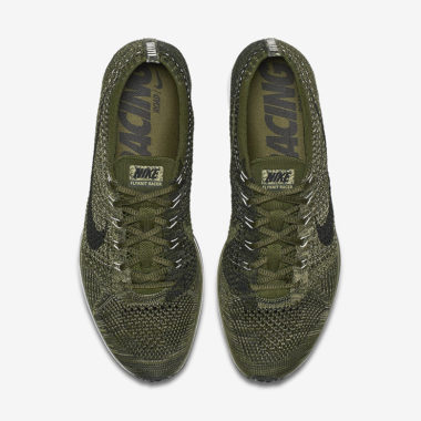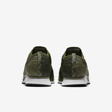Dernièrement, Nike Running a ajouté une légère modification à son modèle Nike Flyknit Racer en lui appliquant un motif camouflage de façon discrète sur le logo de la languette et sur la lanière du talon.