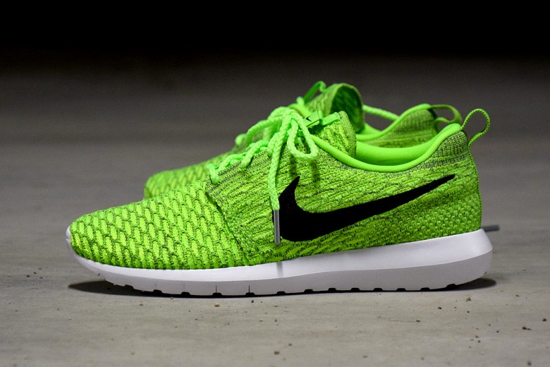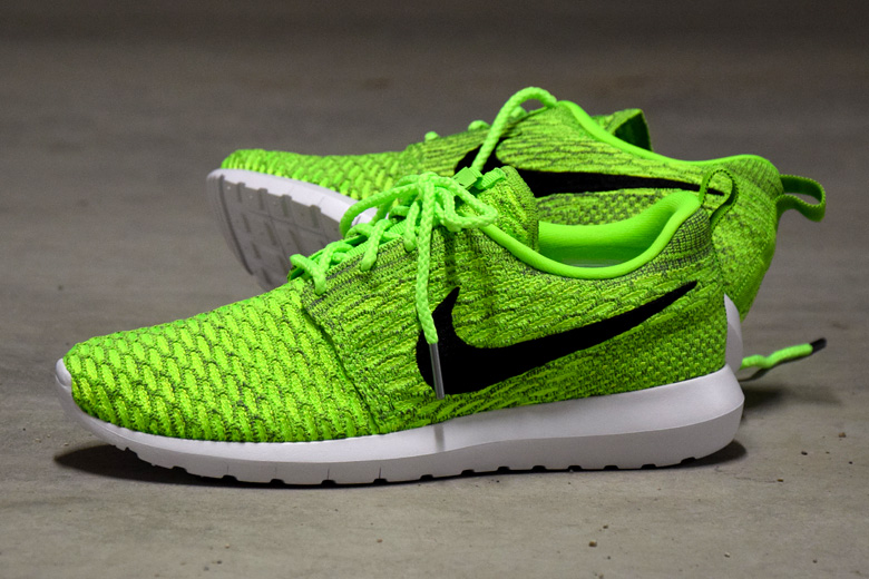 Une Nike Roshe Run au traitement Flyknit dans un coloris Volt.