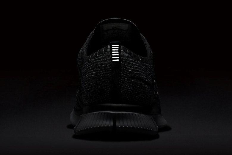 En effet, le maillage Nike Flyknit disposera de différentes teintes allant du noir au gris clair. Pour rajouter une touche de sobriété, on retrouvera un Swoosh de couleur noir à l’arrière du pied.