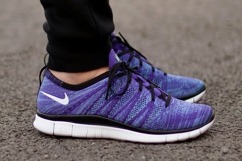Le premier à sortir pour la collection Summer 2015 est majoritairement composé de violet contrasté par un bleu turquoise présent sur le maillage Flyknit.