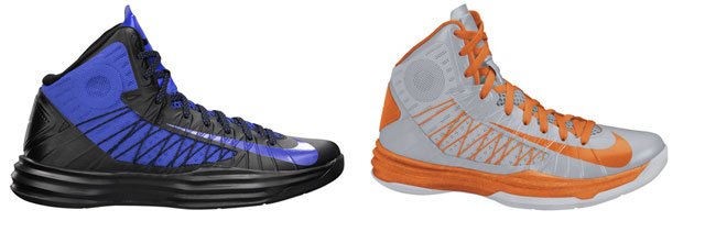 La marque Nike propose pour cette fin d’année 2012 deux nouveaux coloris de sa Nike Hyperdunk. La première viendra dans un coloris « Game Royal » (bleu marine/noir), tandis que la seconde dispose d’un coloris « Syracuse » (orange/gris) et d’une semelle mouchetée. Ces sneakers possèdent toujours une semelle Lunarlon ainsi que la technologie Flywire. Elles sont toutes les deux déjà disponibles sur le Nike Store. Découvrez davantage d’images de ces Nike Hyperdunk 2012 « Game Royal » & « Syracuse » dans la suite de la news.
