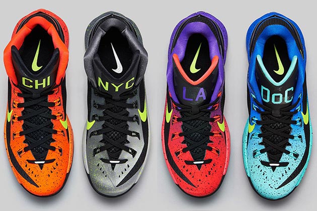 New York, Chicago, Los Angeles et Washington sont les quatre villes choisies par Nike pour le nouveau City Pack dédié à l’Hyperdunk. Le modèle, destiné à la pratique du basketball, s’inspire des quatre villes dans une version high pour NYC et Chicago et low pour LA et Washington. Les initiales des villes sont présentes sur la languette de la paire. Chaque modèle est réalisé de la même façon : une semelle translucide mouchetée et un upper bicolore dégradé. Ce pack sera disponible le 8 août, soit une semaine avant le World Basketball Festival de Chicago.