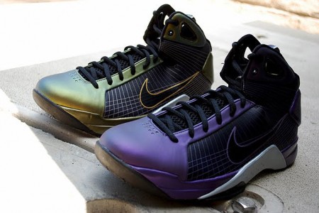 Nike continue à décliner son modèle basketball Hyperdunk en lui appliquant des coloris d’autres modèles mythiques notamment la Flighposite. Ces coloris Eggplant et Metallic Gold sont disponibles aux USA à $125.
