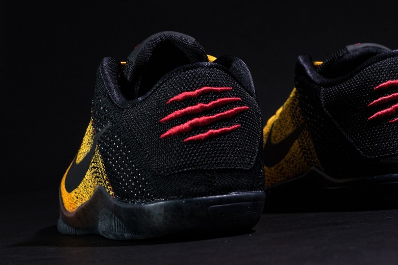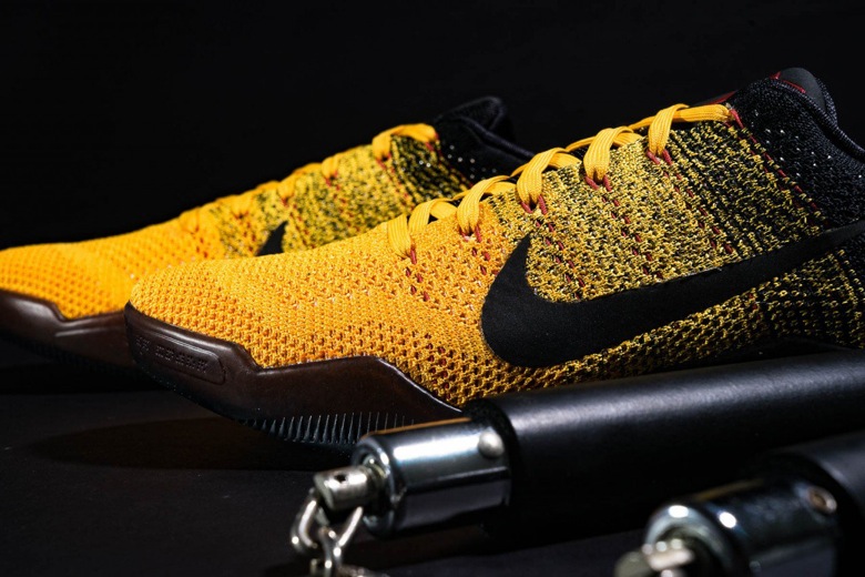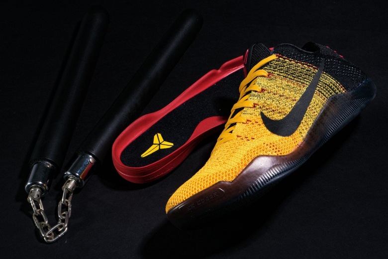 Après des éditions limitées proposées sur le cinquième et le neuvième modèle de la star NBA chez Nike, ce coloris surnommé « Bruce Lee » fera son retour en mars sur la Nike Kobe 11. La paire à tige basse conservera son empeigne en Nike Flyknit dont la couleur évoluera en dégradé allant de l’avant à l’arrière pour passer du jaune au noir. Plusieurs détails rouges seront également présents comme les Flywire, le logo de Kobe Bryant sur la languette ainsi qu’au niveau du talon avec les broderies qui représentent des griffures.