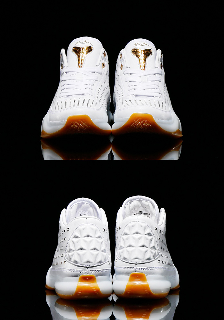 Ici, pas de swoosh sur le coté de la sneaker mais un beau cuir blanc perforé par des croix qui rappellent de quel modèle de la série Nike Kobe il s’agit.