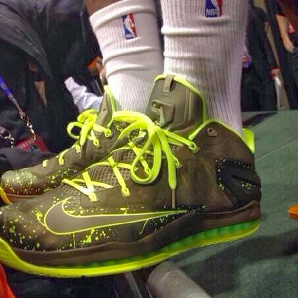 Lebron James portait lors de la soirée de samedi au All-Star Game 2014 de la Nouvelle-Orléans une version low-top de la Nike Lebron 11. On se rappelle que l’an passé, à la même période, King James avait chaussé ses Nike Lebron 10 Low Easter pendant les sessions d’entraînement au ASG d’Houston. Découvrez plus d’images de cette Nike Lebron 11 Low ‘Dunkman’, qui verra le jour en mai 2014, dans la suite de l’article.