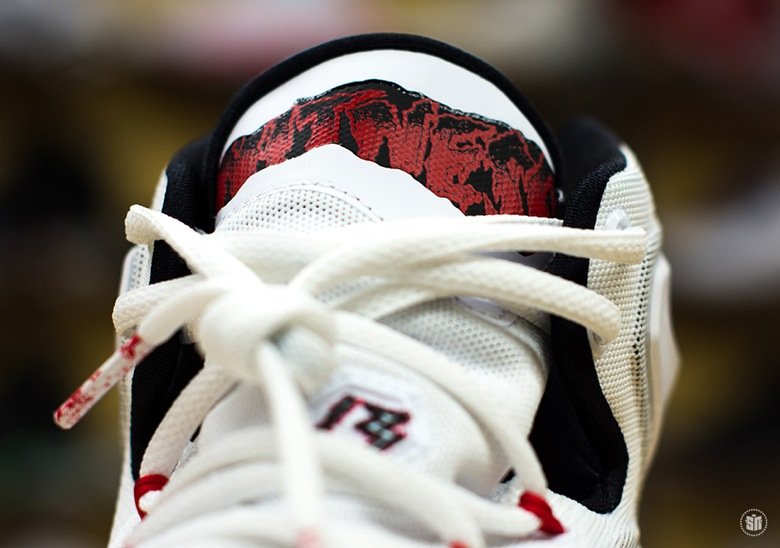 Plusieurs détails feront donc référence à ces films comme les éclaboussures sur la semelle ainsi que les différentes inscriptions disposées un peu partout sur la sneaker avec une typographie reprenant celle utilisée pour les affiches de Friday the 13th.