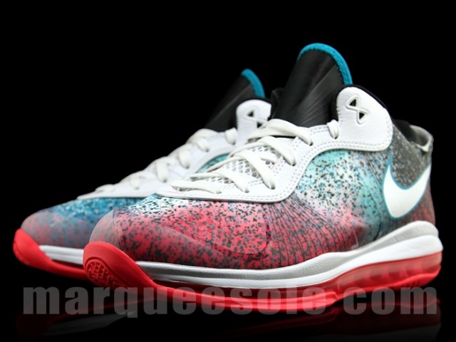 Depuis que Lebron James a emmené son talent à Miami, Nike en profite pour sortir des paires dont les coloris s’inspirent de la ville de Floride. Cette fois-ci la Nike Lebron 8, dans sa seconde version, arbore des couleurs censées rendre hommage au côté festif de la ville. La paire est bien entendu une exclusivité pour les USA.