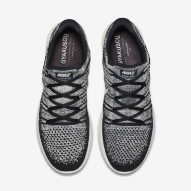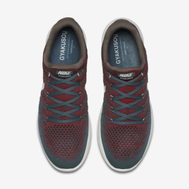 Pour cette saison, la partie footwear sera assez intéressante puisque les designers ont travaillé sur la nouvelle silhouette running de la marque au Swoosh, la Nike LunarEpic Low Flyknit 2. Cette sneaker dispose toujours de la semelle Lunarlon et l’empeigne en Nike Flyknit sera cette fois-ci faite d’une seule pièce. Le tissage présentera un dégradé de couleurs allant du gris au noir ou du rouge au vert. Le marquage Nike x Guyakusou sera présent sur la languette et la semelle intérieure.
