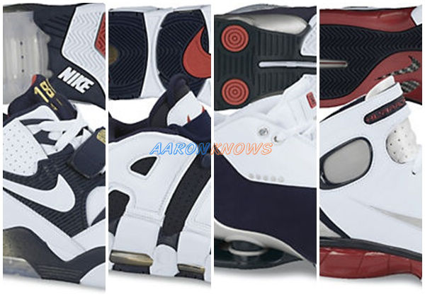 Nous vous avions annoncé le retour de la Air Force 180 Olympic et de la Air Jordan 6 Olympic pour 2012. Voici désormais un peu plus d’infos sur ce que prévoit Nike pour cette année olympique (Jeux Olympiques de Londres). La marque ressortira donc une paire par « Dream Team » : la Air Force 180 Olympic de Charles Barkley lors des J.O. de Barcelone, la Air Max Uptempo Olympic de Scottie Pippen lors des J.O. d’Atlanta, la Shox BB4 de Vince Carter lors des J.O. d’Athènes (tout le monde se souvient du fameux dunk sur Frédéric Weis) et enfin la Huarache 2K4 des J.O. de Pékin (portées par Boozer, Bryant, Kidd, Bosh…).