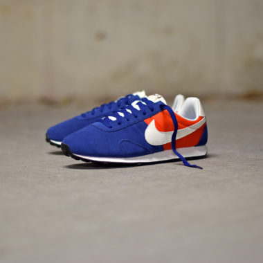Nike ne se trompe pas en rendant toujours hommage à son légendaire athlète et c’est sa Nike Pre Montreal qui fait son retour cette saison, Spring 2017. C’est d’ailleurs l’un des premiers pro-modèles de la marque puisqu’il est sorti en 1973. La paire est en daim bleu marine et nylon rouge (un team orange ici). Le modèle est proposé dans une version lifestyle avec une véritable semelle pour la gamme Nike Sportswear.