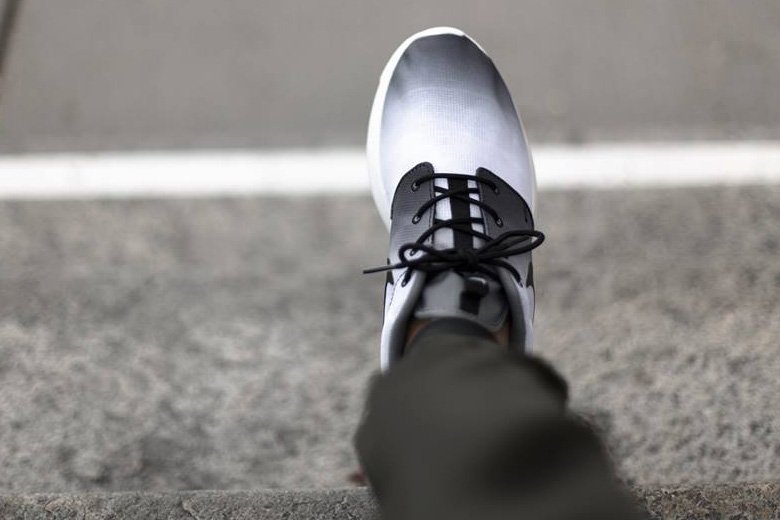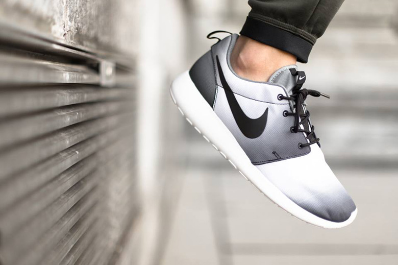 Cette Nike Roshe Run dispose d’un imprimé original appliqué sur une toile en ripstop. En effet, la couleur est traitée avec un effet de dégradé sur chaque empiècement pour passer du blanc au noir.
